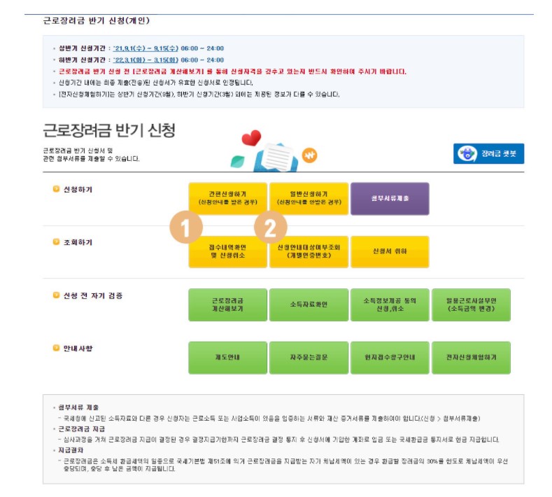 2021년 상반기 근로장려금 신청접수가 시작되었습니다.