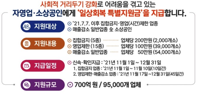 소상공인 일상회복 특별지원금은 지난 2021년 7월 7일 이후